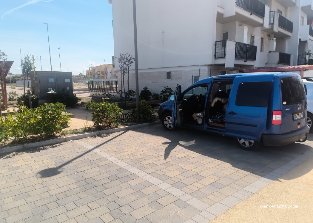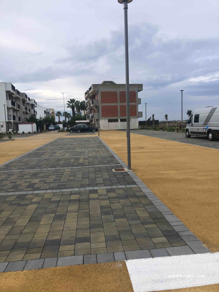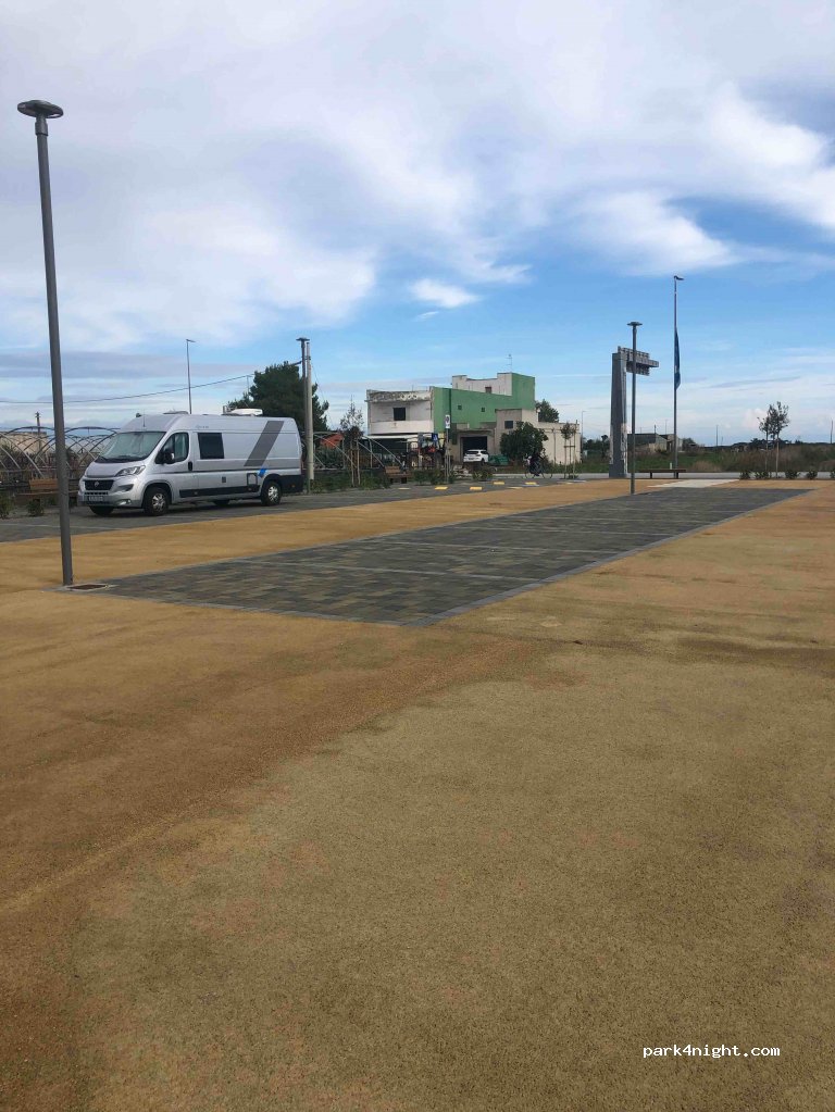Parcheggio di nuova costruzione con panchine, bidoni della spazzatura e possibilità di riempire bottiglie/lattine d'acqua. Vicino alla strada ma non ha trovato fastidioso il traffico.