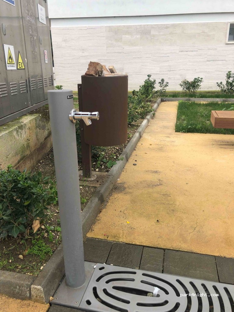 Buon parcheggio in zona residenziale con pompa dell'acqua con getto molto forte. Bene per il silenzio notturno.