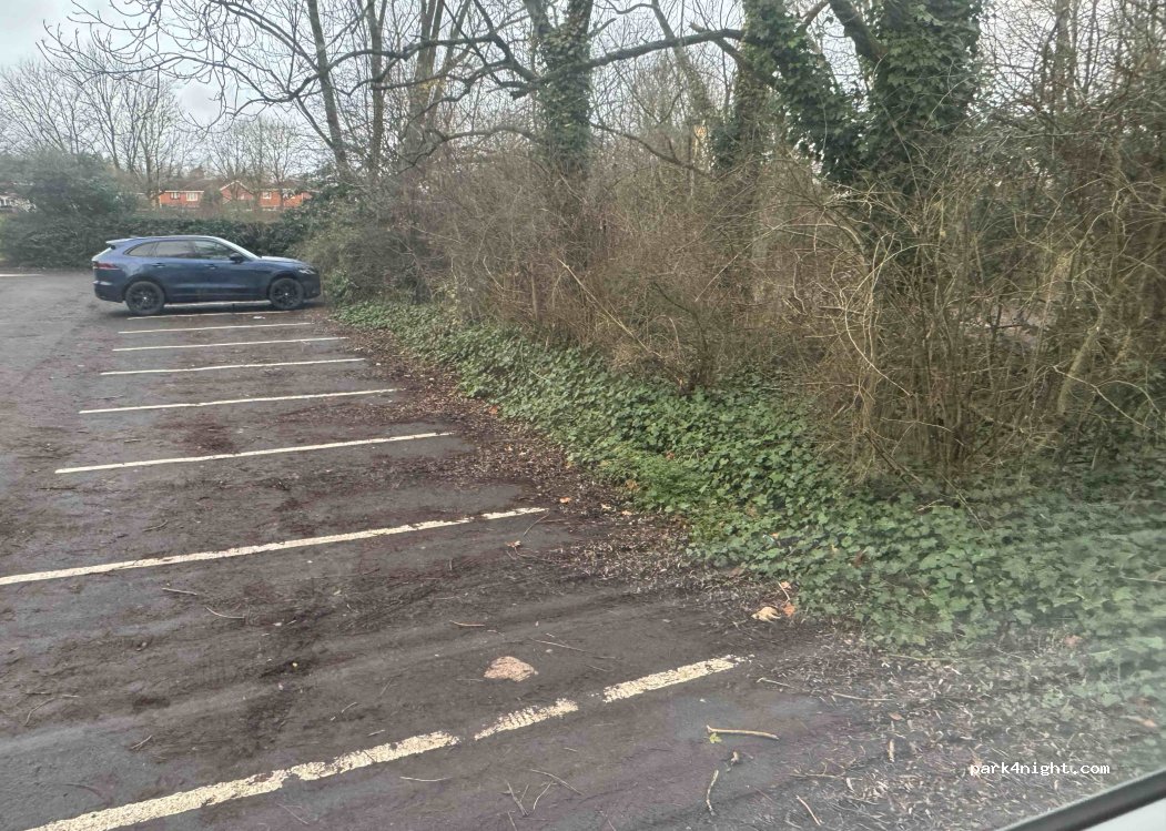 Secluded car park in a residential area,pub right next door, next to a park with a lake. Typical rubbish about as no bins. We had a quiet night before visiting Birmingham.