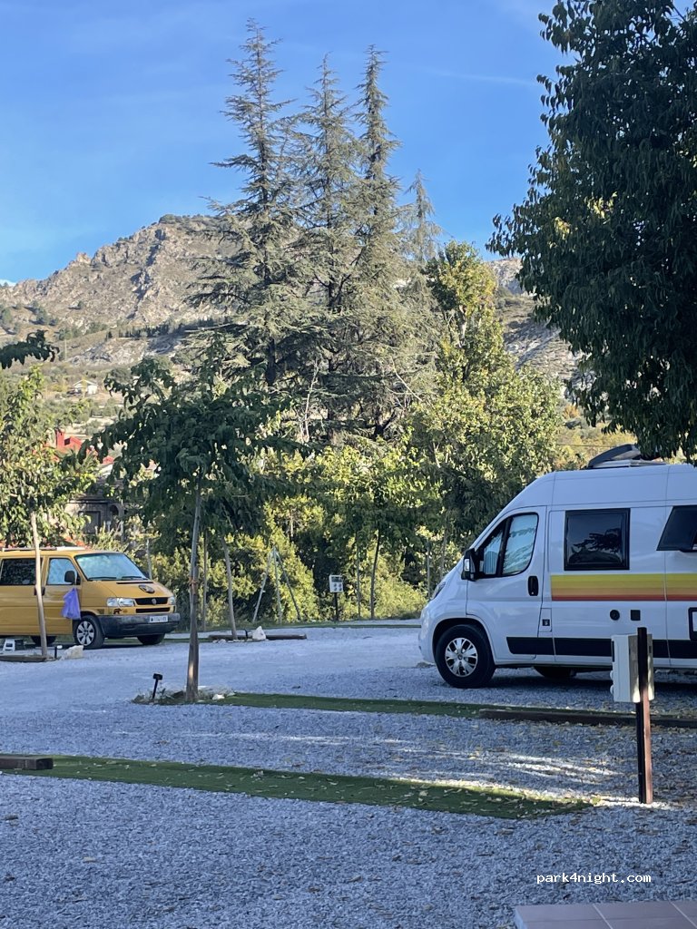 je recommande cette aire, bien placée pour visiter Grenade soit en bus avec arrêt à côté de l'aire où soit à pied par le camino historico. 16€ sans électricité, 1€ la douche tout est parfait. le village offre toutes les commodités ( boulangerie, coviran, restaurants, bars). Gérante très sympa, donne tous les renseignements sur la région qui est magnifique.