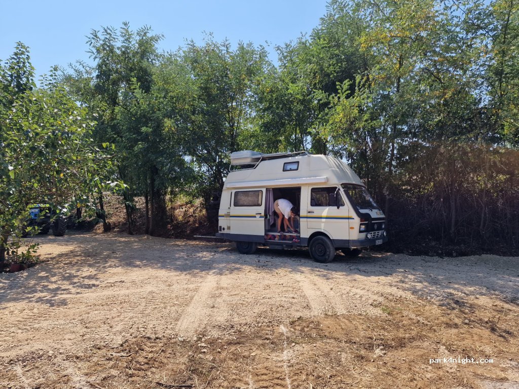 Nice parking, no service, nice view into valley, fruit trees, very quiet apart from the train and the bell from the railway barrier. Unfortunately, the train goes directly past the parking. First train in the morning at 5:40, it goes hourly. We stayed for 2 days.