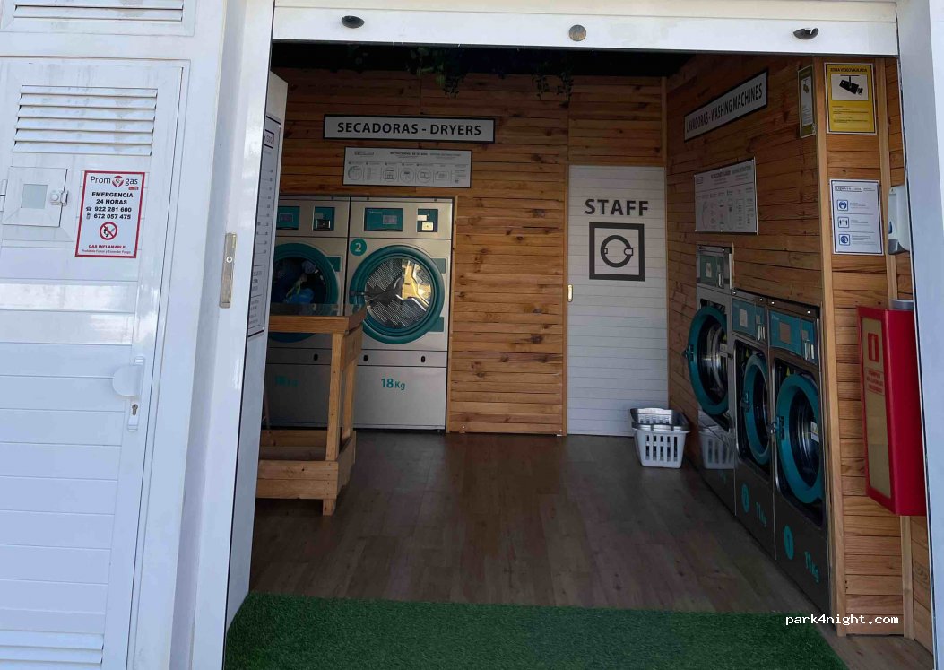 Clean and modern laundromat with large machine for 19kg laundry. Advantage to other laundromats: there is plenty of parking nearby and a nice park to wait in.