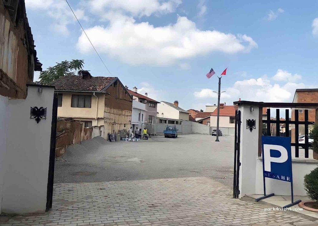 Amplio estacionamiento en el centro de Prizren. Estacionado nuestro camión allí durante una semana, el lugar está vigilado y ofrece una máquina expendedora de café.