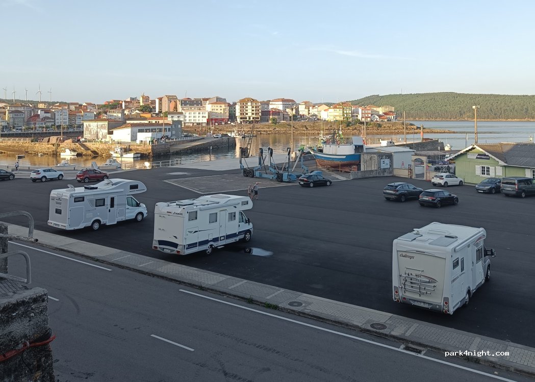 Área perfecta para pernoctar. Sin servicios pero en el mismo puerto con vistas espectaculares. Bonito y encantador pueblo da costa da Morte.