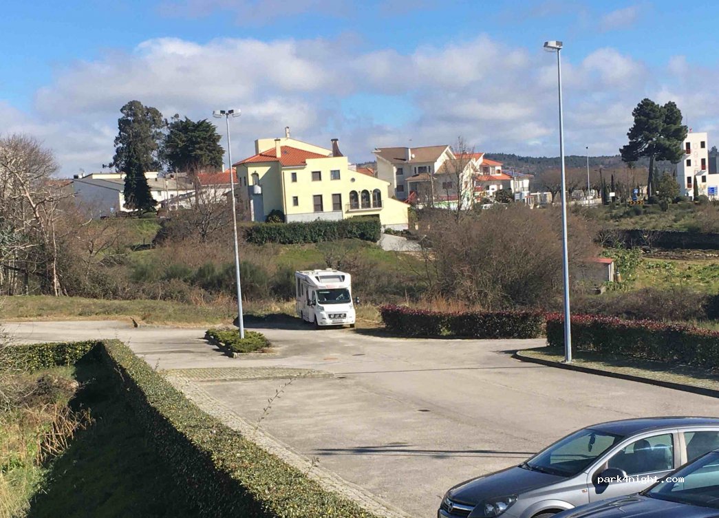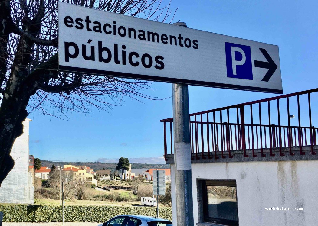 Öffentliches kostenloses P hinter Câmara Municipal (= Rathaus), möglicherweise während der Arbeitszeit beschäftigt, unten etwas uneben (keine bemalten Flächen), nachts beleuchtet, ruhig genug zum Übernachten. In der Nähe von traditionellen Geschäften. Denkmäler und Fremdenverkehrsbüro bequem zu Fuß erreichbar.