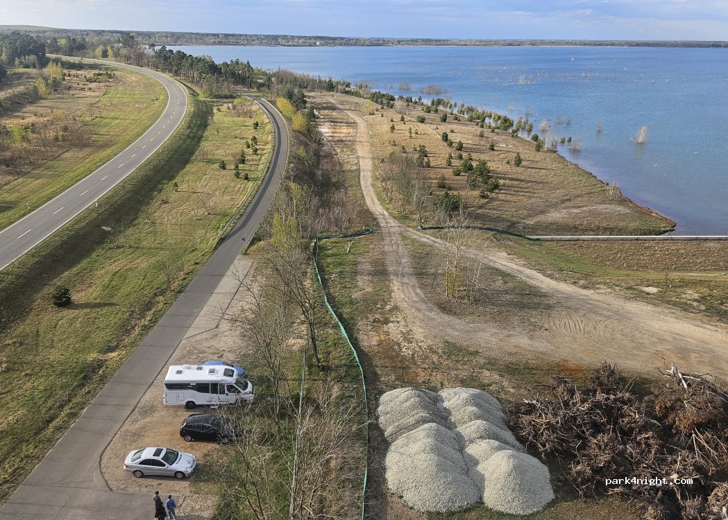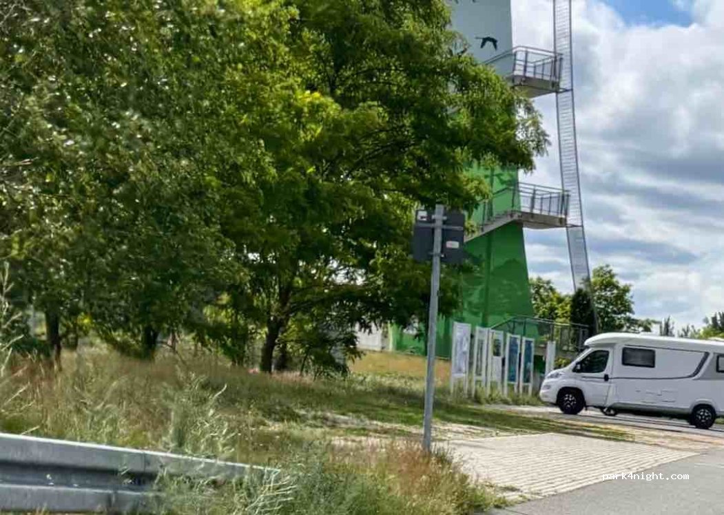 Kleiner Parkplatz am Aussichtsturm nur für kleinere Wohnmobile bis 8m Länge geeignet. Guter Ausgangspunkt für eine Radtour oder ein bisschen wandern. Zum Übernachten nur bedingt geeignet,da direkt neben einer Bundesstraße.