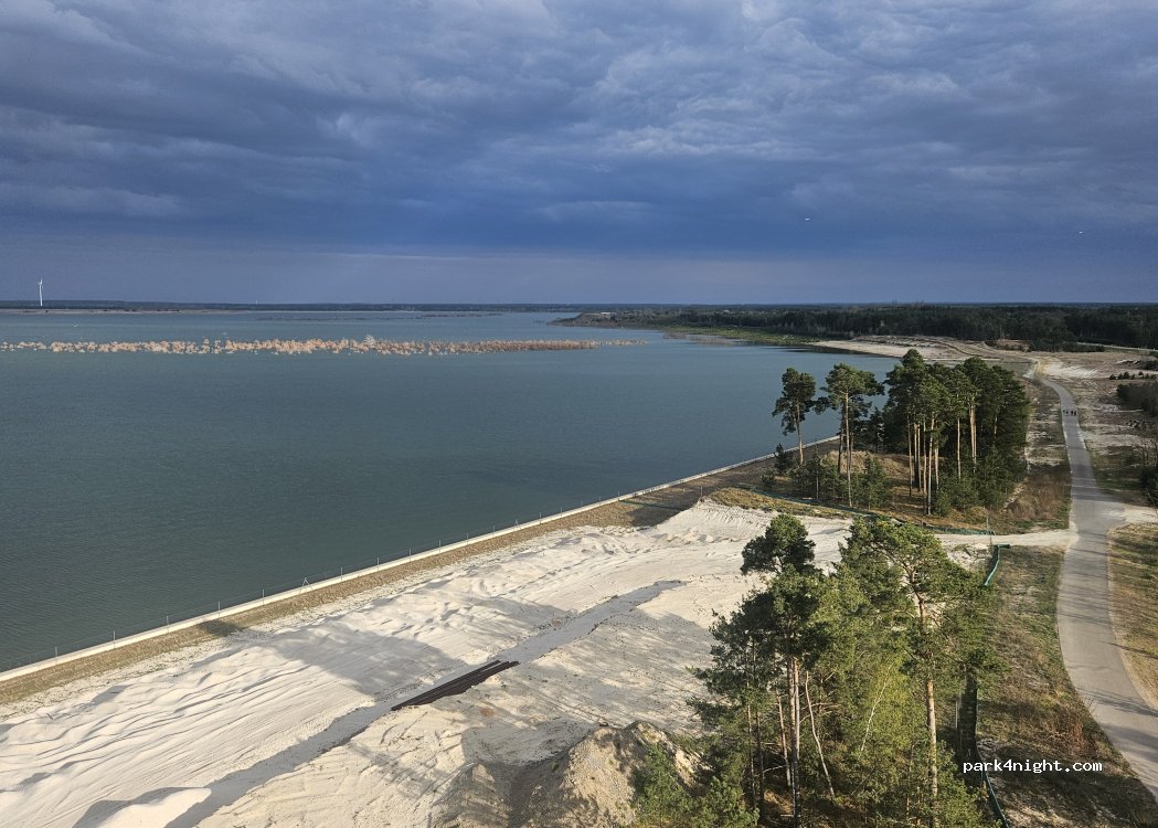 Ein guter Platz für den Tag mit interessanten Informationen über die Geschichte der oder des neuen Ostsee, ist schon cool auf dem Turm. Von Sonntag zu Montag hatten wir ab 22uhr eine ruhige Nacht. Es kommen auch viele um sich das Panorama bei Nacht anzuschauen. Wenn die Bauarbeiten richtig beginnen wird es vermutlich anders sein.