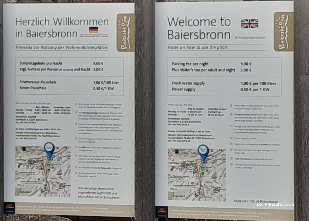 ganz netter Platz, aber für einen Ort wie Baiersbronn teuer. Für eine Nacht mit Kurtaxe und 4 Euro Strom 28 Euro. Da kann ich fast auf einen Campingplatz gehen.