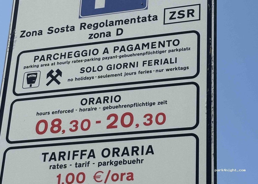Effectivement grand parking proche du centre historique. Attention a l'arnaque de l'italien qui vous demande de payer le parking de main à la main. Il faut utiliser les horodateurs ! Personnellement je n'y passerai pas la nuit