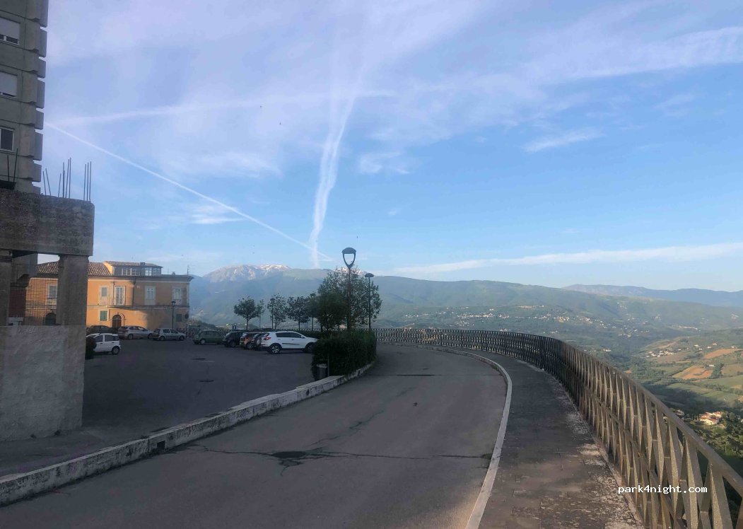 Ampio parcheggio gratuito di fronte alla chiesa. A pochi passi da bar, panetterie e pasticcerie. Bellissima vista panoramica.