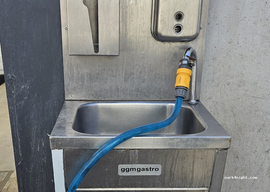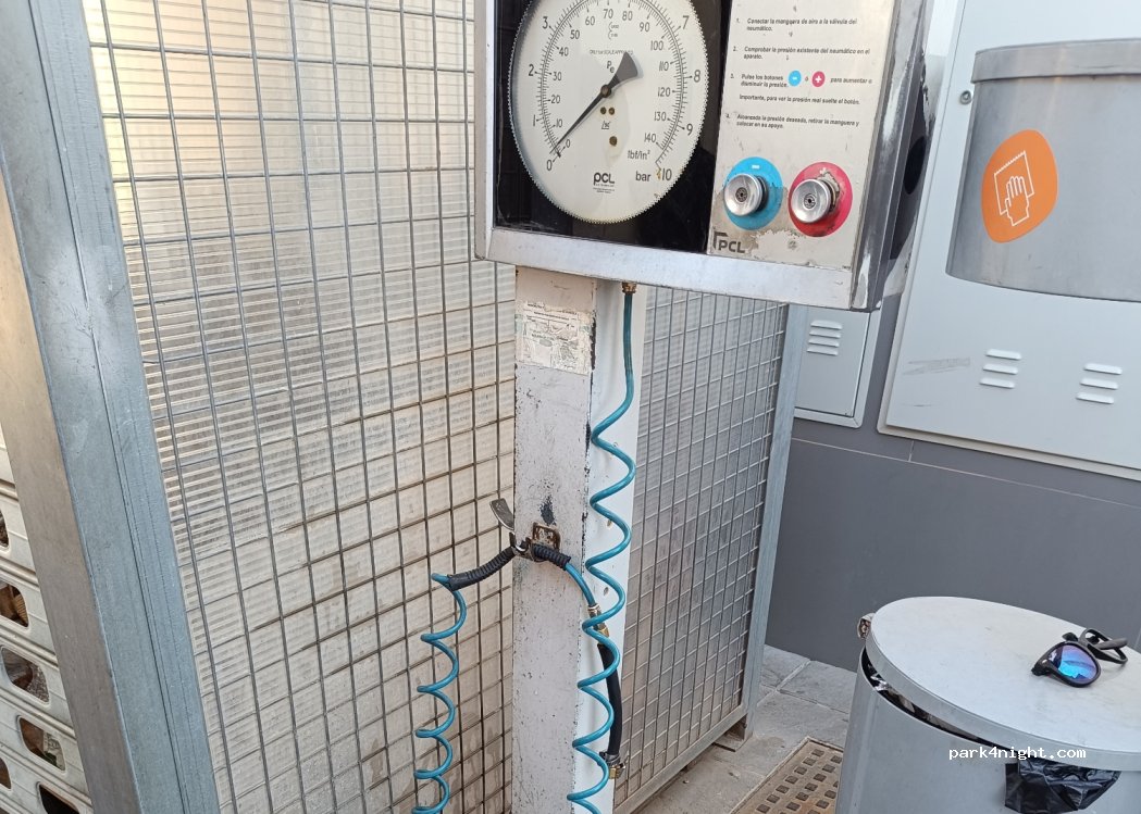 Agua y Aire gratis. Lavadero Autocaravanas con escalera y vaciado aguas.