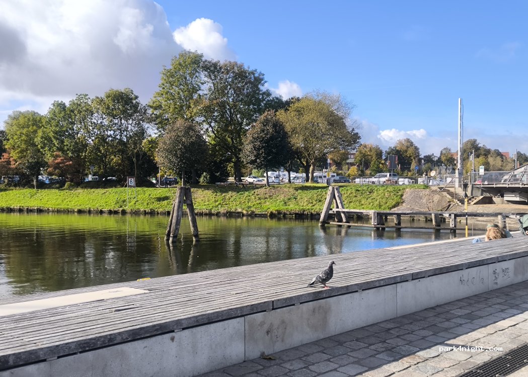 Sehr gute zentrale Lage, aber nicht mehr. Außer parken (Kopfsteinpflaster) gibt es keine weiteren Angebote (WC, Entsorgen, etc.). Um die Ecke an der Drehbrücke hat es einen schönen Spot um auf einer Stufenterrasse den Sonnenuntergang zu genießen.