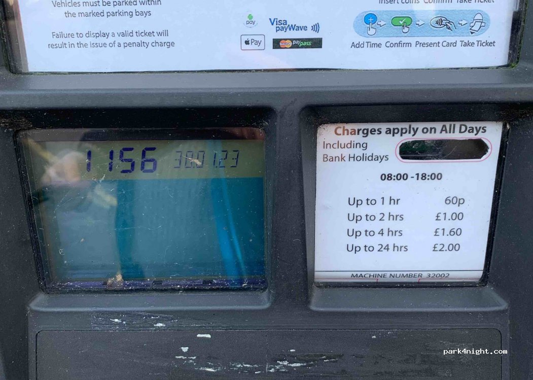 Ok carpark £4.20 24hrs. Free WiFi CP but gets full, because very convenient to shops and attractions. Quite noisy one particular campervan had his noisy heating on all night please be aware of noise pollution as well as rubbish