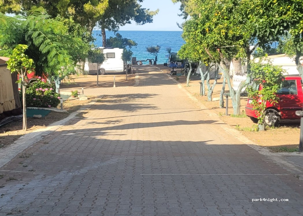 Fabulous. Lovely pitches, many on the sea or just a row or two back are all good. Friendly. Super hot showers which are spotless. Many pitches under orange trees. Beautiful surroundings, pretty beach, clear water and many restaurants along beach, quiet at the moment. Small mini market where can order bread. Best so far