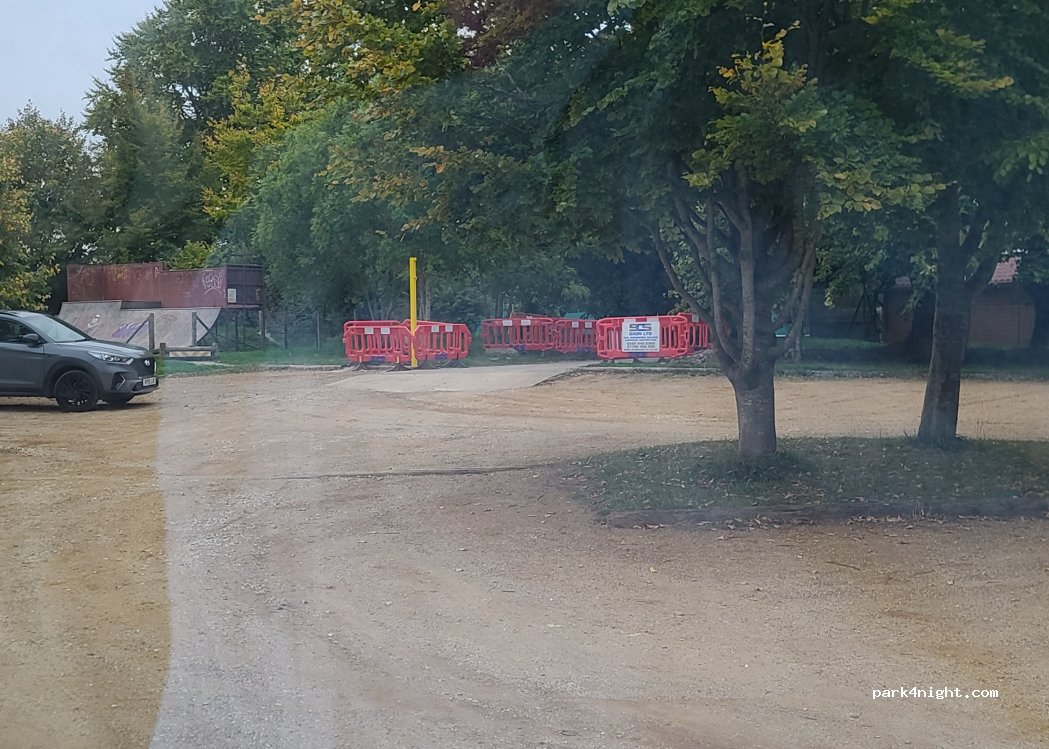 Off Road Car Park at the outskirts of Blewbury, Savages Garden Centre is about 100 meters away where you have public toilets, and some food. easy access to the famous ridgeway if you walk up the track. no signs saying "no overnight" parking so as good of a park up as any. No boy racers, beside a skate park, tennis court and child's park that is always empty. plenty of nice walks all around you.