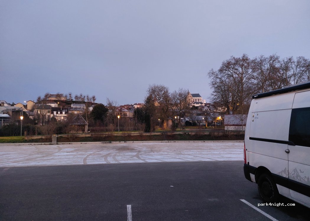 Gloednieuwe camperplaats. Gratis parkeren, betaalde diensten. Ideaal gelegen onder de stad langs de rivier en niet ver van het kanaal. Grenzend aan het gloednieuwe zwembad. Sanitaire voorzieningen in het zwembad. Prachtig uitzicht op de kerk die de stad domineert. Voldoende ver van de weg. Pizzeria ter plaatse. Kwaliteitsrestaurant direct naast de deur (guinguette).