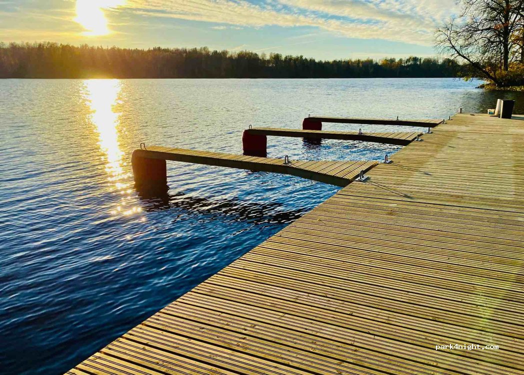 Le camping est situé au bord de la rivière Daugava, entouré d'une forêt verdoyante.