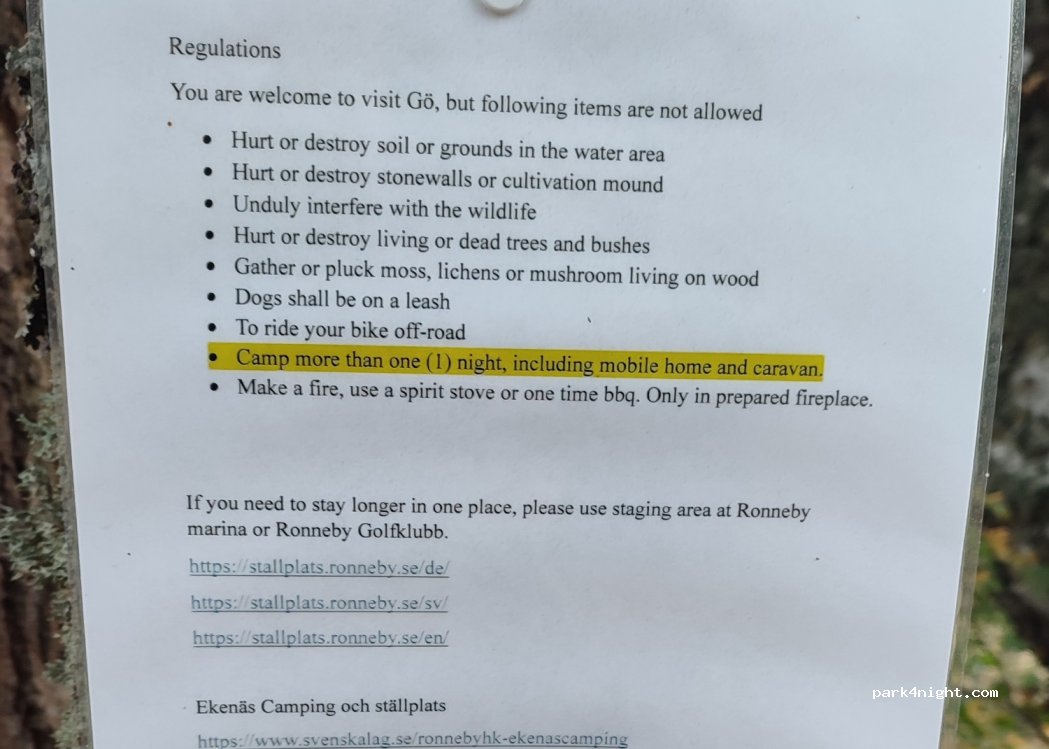 Schöner Parkplatz. Doch heute wurde ein Schild angebracht, das parken von 0 Uhr bis 5 Uhr morgens verboten ist. Schade!