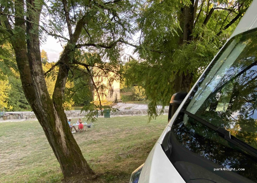 Formidable endroit ! Bercés par le bruit de la rivière, nous y avons passé une super nuit. Emplacement plat et herbeux juste devant l’écluse. Nous nous y sommes émerveillés devant les passages incessants du martin pêcheur et devant la majesté du héron cendré. Un petit coin de nature en ville qu’il faut absolument respecter et préserver. Merci à la mairie. La police est passée et ne nous a rien dit. Petit bémol tout de même : quelques relents d’égout par moment.
