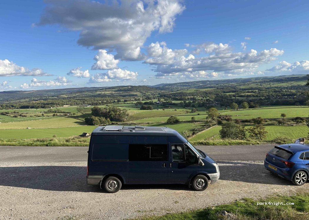 Great views from a quiet roadside, good phone signal on O2 and EE. Not the most level of parking spots, but managed to get the worst kinks ironed out with levellers.