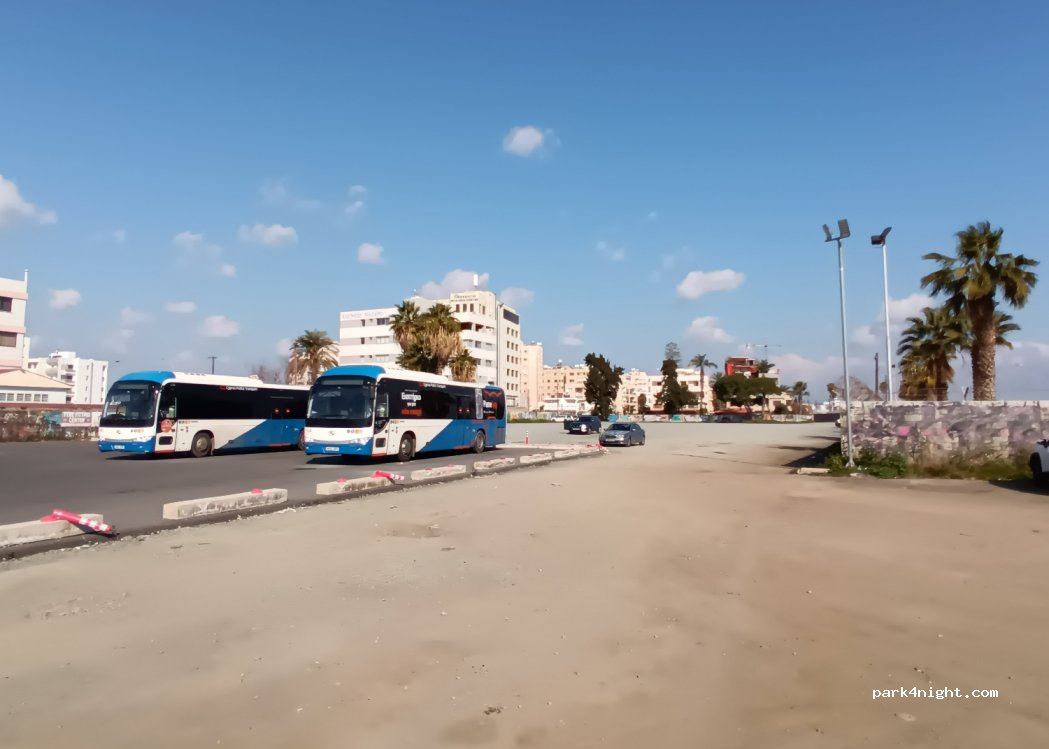 Riesiger kostenloser öffentlicher Parkplatz, rund um die Uhr geöffnet, hinter dem zentralen Busbahnhof gelegen, viel Platz zum Parken, tagsüber ziemlich voll, aber nachts ruhig (für ein Stadtzentrum). Saubere und gepflegte Toiletten am Busbahnhof, weitere Toiletten und Duschen am Strand an der Promenade selbst, WLAN auch an der Promenade verfügbar, ebenso wie Geschäfte, Bars und Restaurants.