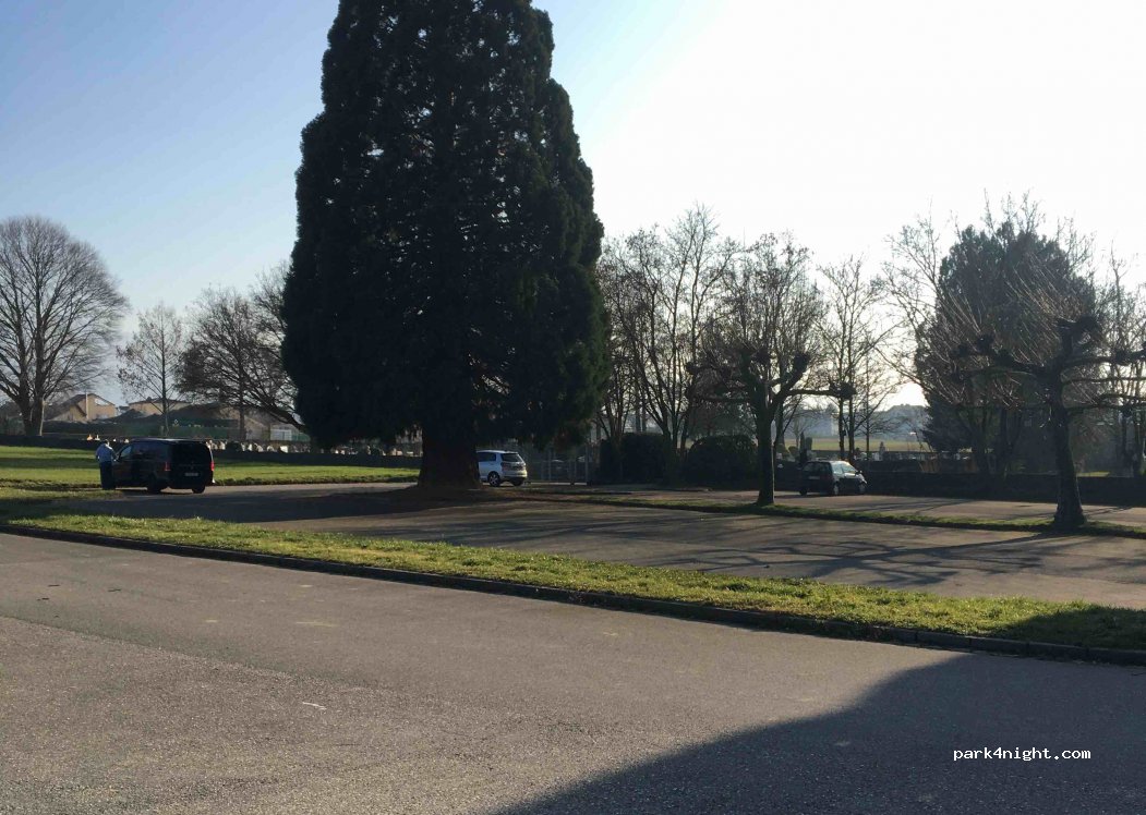 Parkplatz am 360 Grad Wanderweg, neben dem Friedhof. Günstig neben viel befahrener Straße.