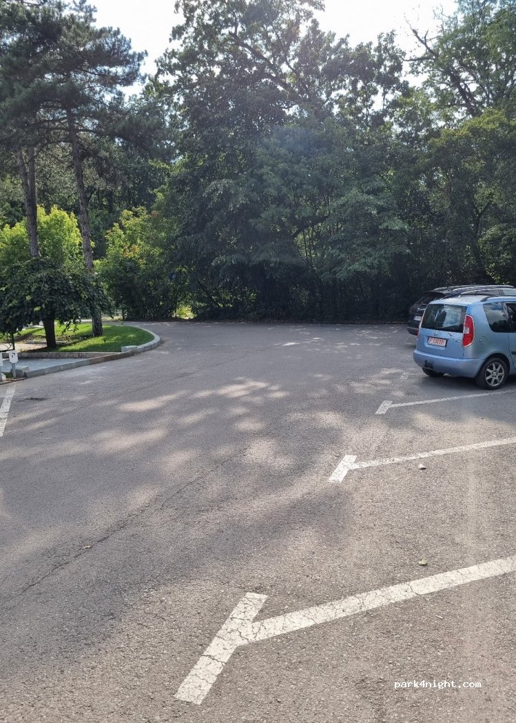 En lisière de forêt, à côté d'une aire de jeux et pas très loin du zoo de Bucarest, parking isolé, gratuit. Il y a même des toilettes dans le parc et le wifi gratuit.