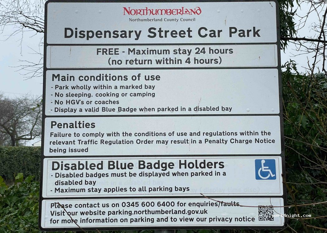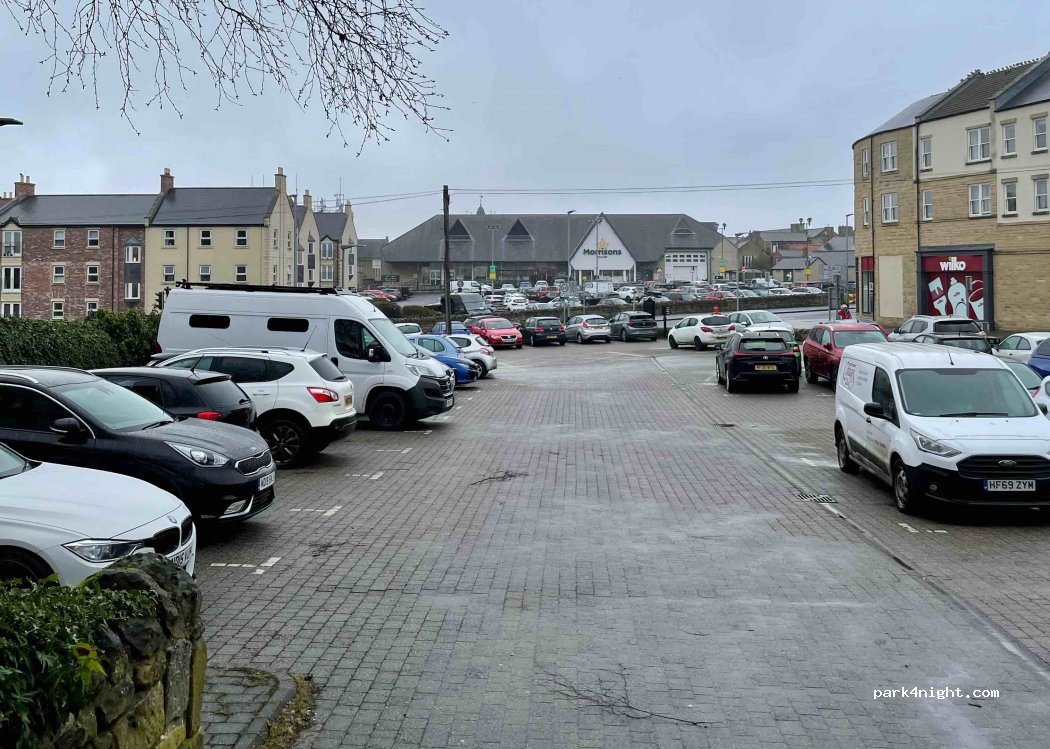 Parked here for free during the day to visit the town and Alnwick Castle. Easy to park in our SWB Boxer. No parking disc required.