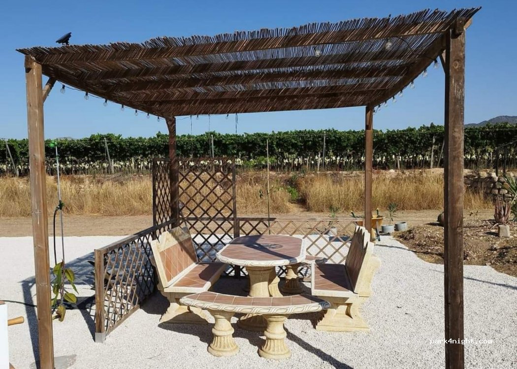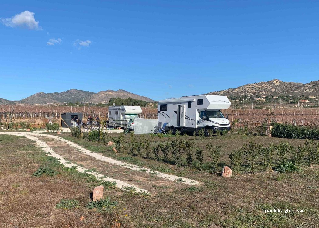 Wunderschöner Stellplatz umgeben von Weinplantagen in den Bergen von Aspe.