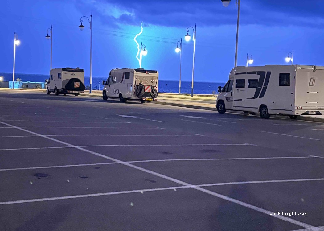 Immense parking devant la gendarmerie donc hyper sécurisé. Proche de la plage et du village, merci à cette municipalité, car pas trop de camping à proximité. Nous y avons passé une très bonne nuit.