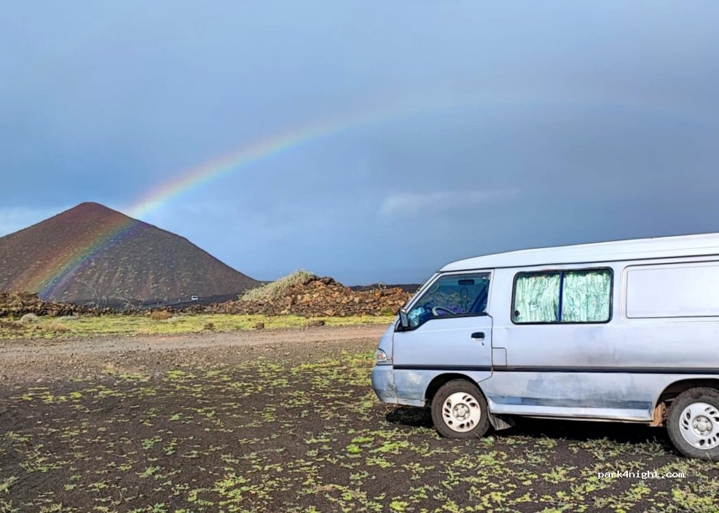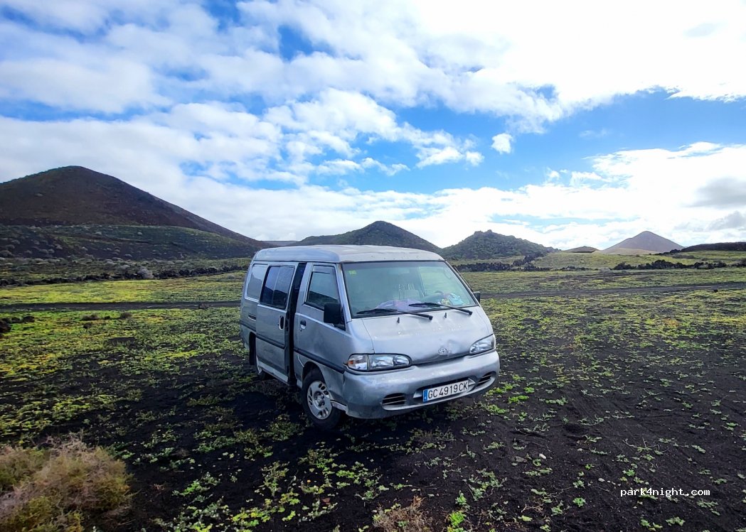 toda esta zona es protegida ni en el parkin del golfo , ni en ningun parkin inventado por otros, tampoco salir de la calzada asfaltada son 600€ de multa por medioambiente , en esta isla no kieren este tipo de turismo x el mal uso q dan al espacio ..