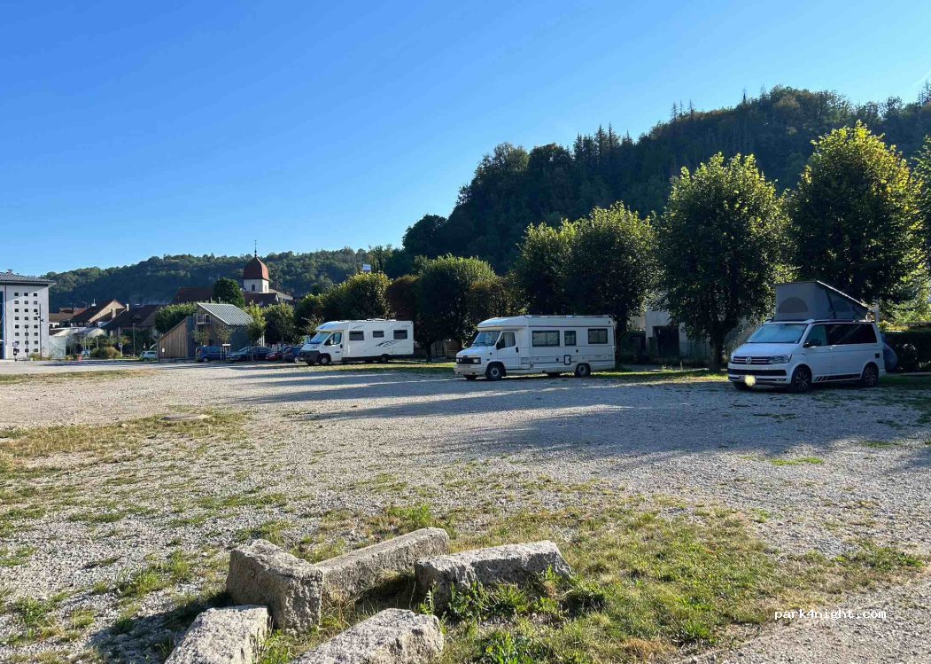 Parking très grand idéal pour aller visiter le musée du jouet, le centre ville. nous n’y avons pas passé la nuit mais l endroit était calme en journée. pas de services.