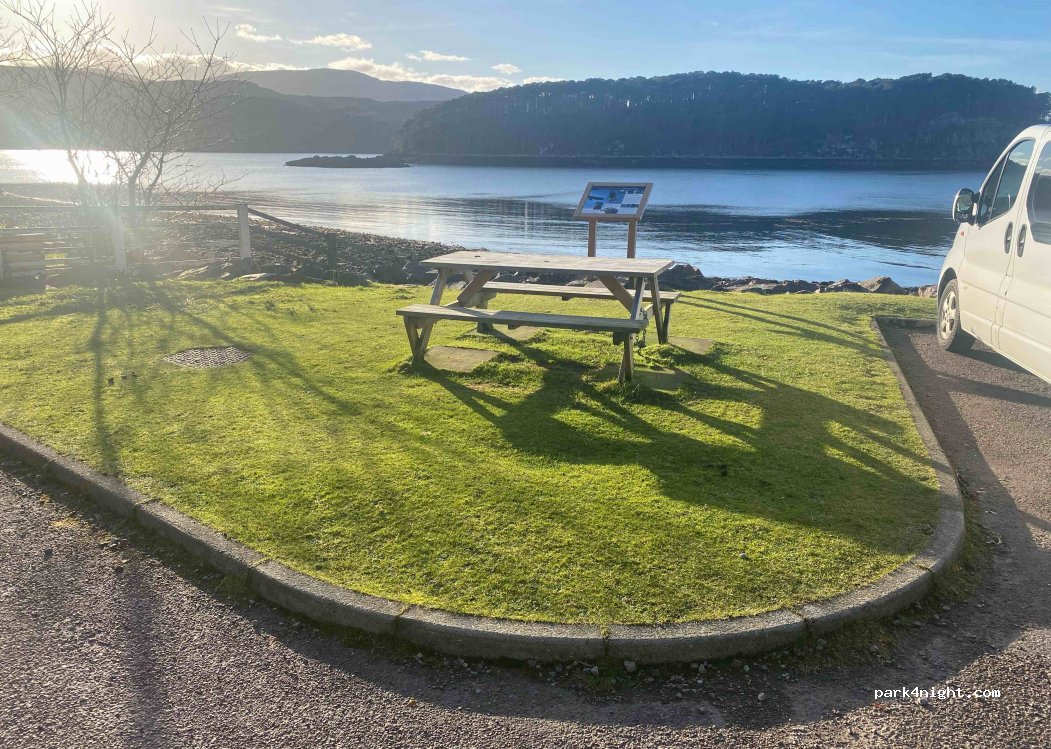 Lovely spot, close to the toilets where you can leave a donation. The Shieldaig Circular walk is close by with fab views. Nanny's Coffee shop is awesome, friendly staff, good atmosphere and fantastic home cooked food.