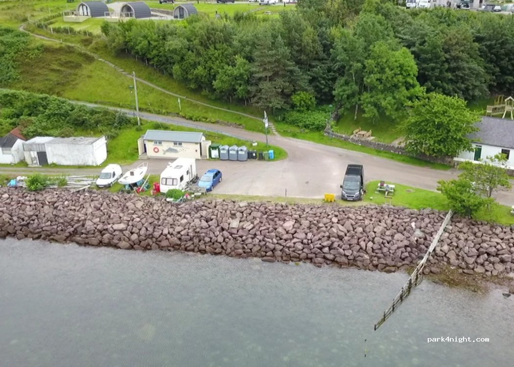Posto MERAVIGLIOSO! Davanti al loch con vista eccezionale. Davanti ha bagni pubblici puliti. Bisogna dare una mancia di 5£ nella cassetta. Vicino al pub del paesino molto carino e ottimo cibo del luogo.
