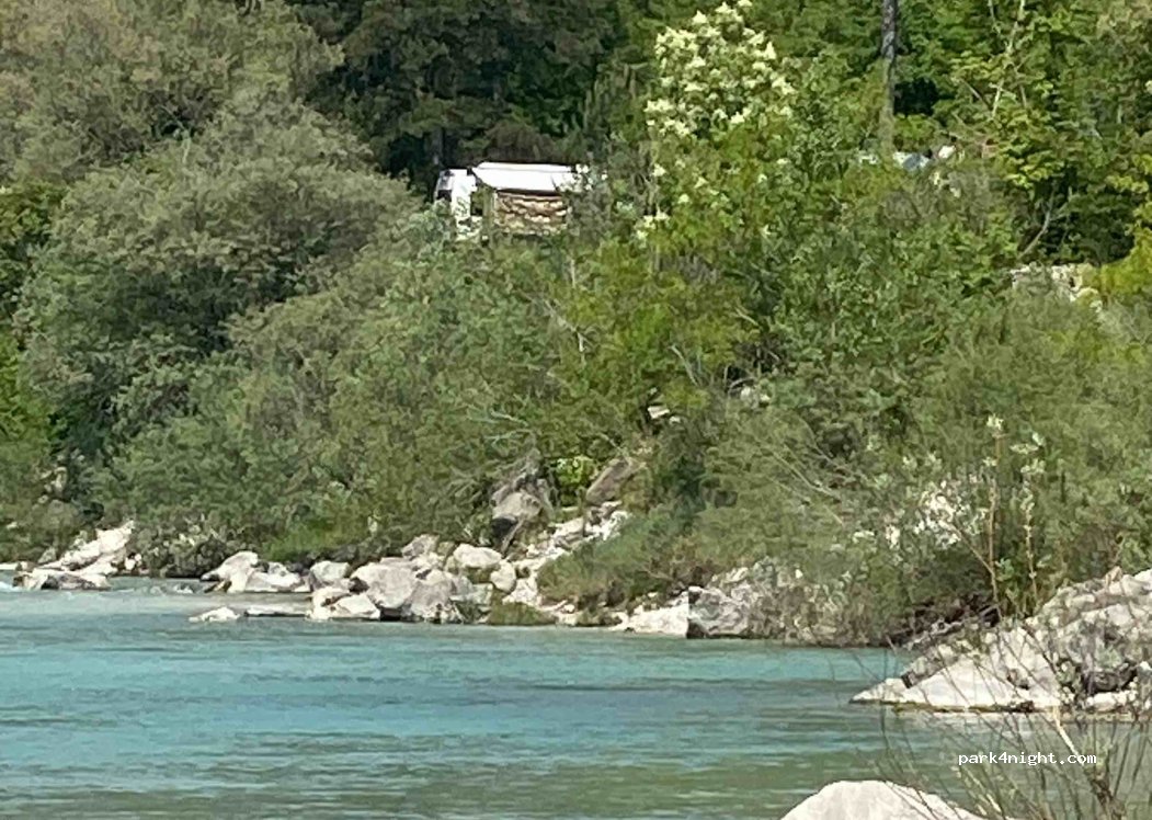 Wirklich ein richtig toller Spot.Zugang zur Soca traumhaft, weitläufig und vielfältig. Freie Platzwahl,so stelle ich mir einen Naturcampingplatz vor.Direkt am Wasser. Lagerfeuer.Einziger - Punkt, zu wenig Toiletten/Waschbecken.Das ist übrigens auch der Grund warum der Campingplatz als "voll" gilt obwohl noch Platz auf dem Feld frei ist,da nach Auslastung der Sanitäreinrichtungen entschieden wird.