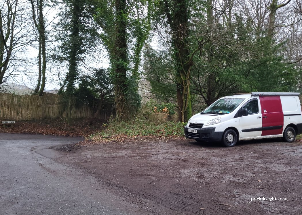 Little parking spot next to Blackdown Hill. space for about 4 vehicles. great spot to walk up the hill for amazing views (pics attached). didn't see a single other car. there is a private gate to a house over the road but the driveway is massive so can't actually see the house. no height restriction.