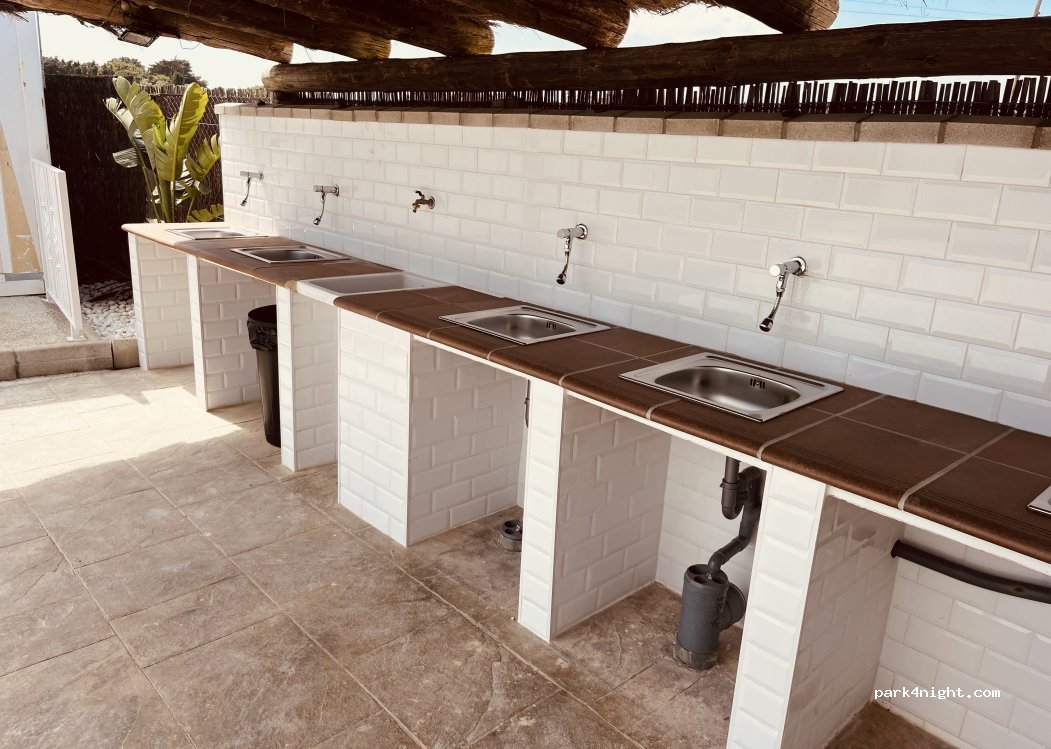 Área nueva. Aunque todavía no la ha termico a su gusto ya esta muy bien.la atencion increíble , hay 1 baño y la ducha caliente 1 € 5 minutos si quieres ducha fría tienes una fuera. Zona de llenado y vaciado muy bien hecha. Dos zonas de vaciado de aguas negras y 3 zonas para lavar vajilla. A 20 min del centro del pueblo y 12 min de la playa.