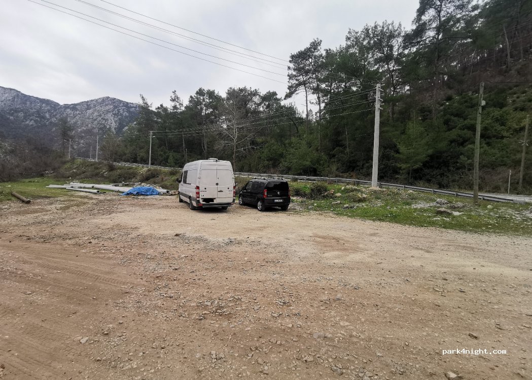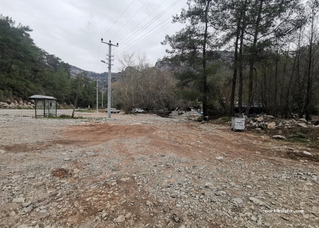 Large parking area, Ideal for visiting the Turgut Waterfalls. There is a footpath leading up the valley.