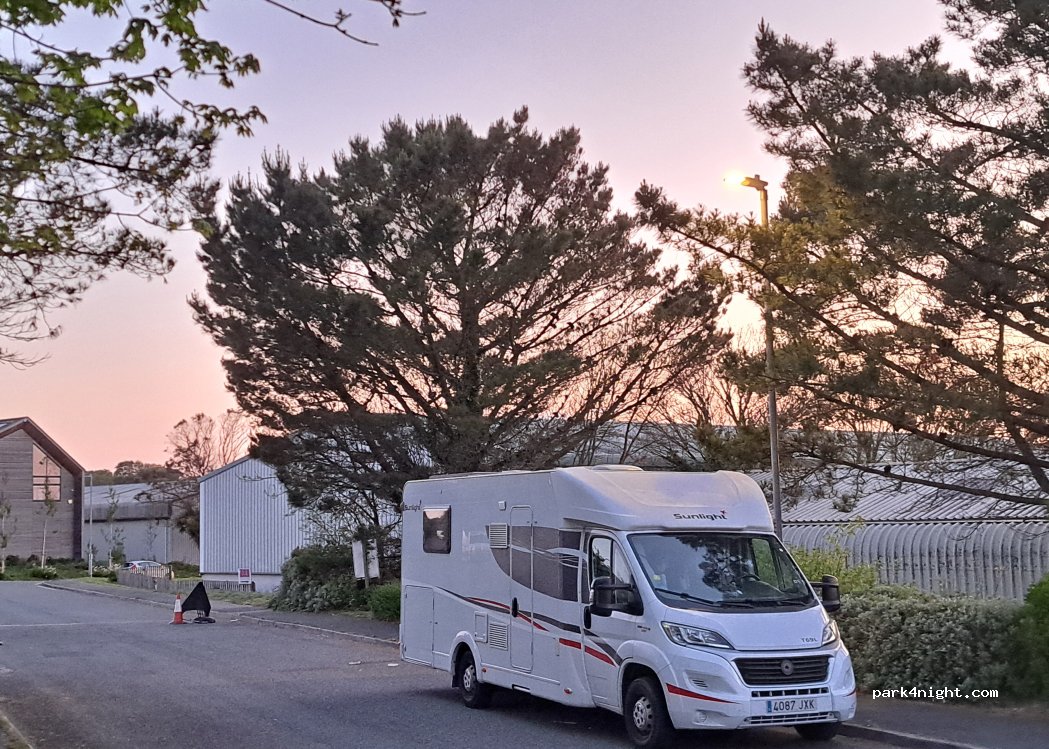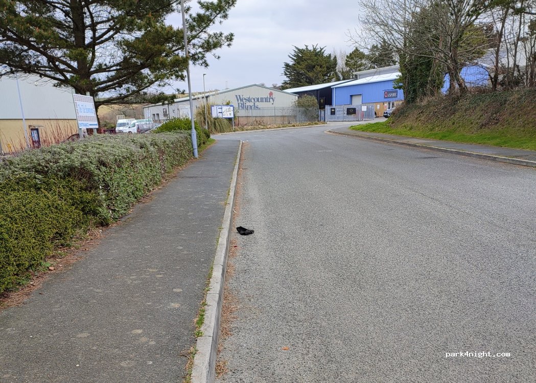 Very quiet road on an industrial estate. Ample on-street parking for motorhomes. Park near the Watersports Warehouse (Google Maps) for the quietest place with no passing or morning traffic because units not in use