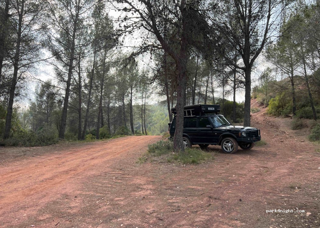 Hay un cartel en al lado del tanatorio que indica que no se puede acampar, ni pernoctar (pasar la noche en el coche) en todo el bosque. En la pequeña carretera antes de llegar al tanatorio hay una explanada donde se puede pasar la noche y es bastante tranquilo, incluso por el día, solo pasan los vehículos que van al tanatorio y gente que se pasea.