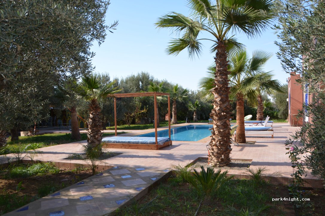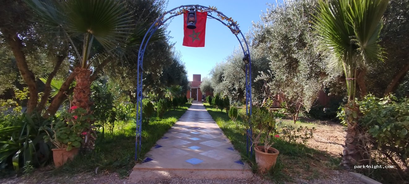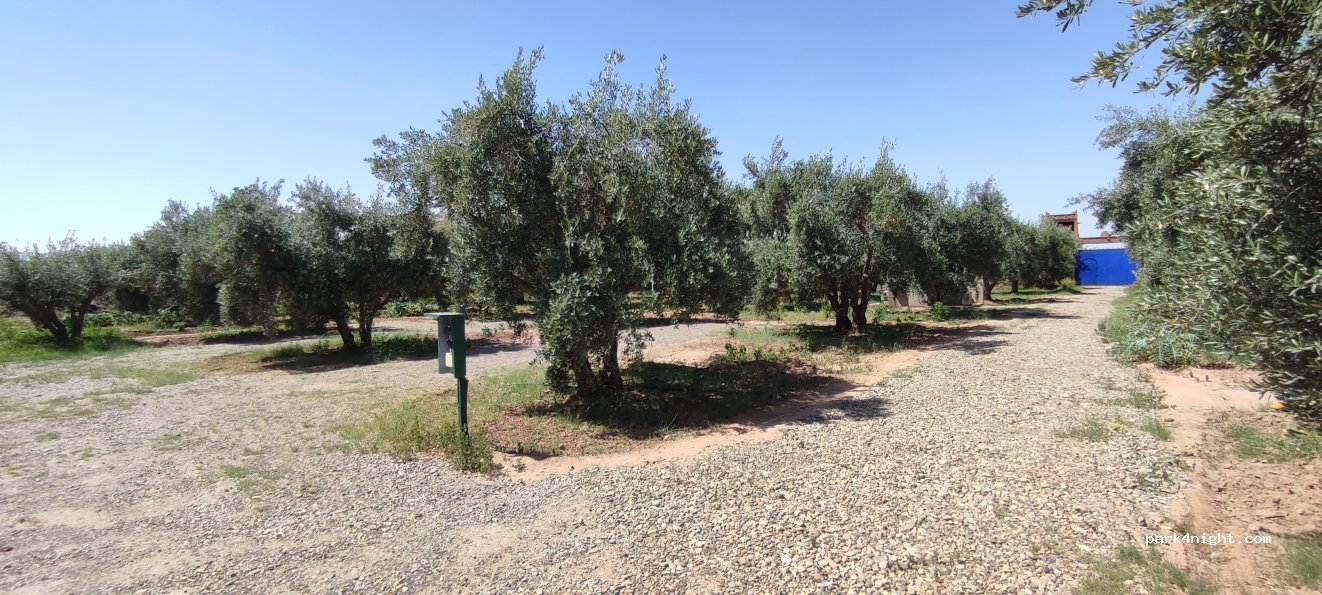 Particular recibe autocaravanas (máximo 10 m, con remolque), furgonetas adaptadas. (Autobuses, CC XXL y similares: NO POSIBLES) 10 parcelas individuales, espaciosas e independientes, en casa de Saida y Gérard, a 20 km de Marrakech, en plena CAMPO, rodeadas de olivos y hermosos jardines.