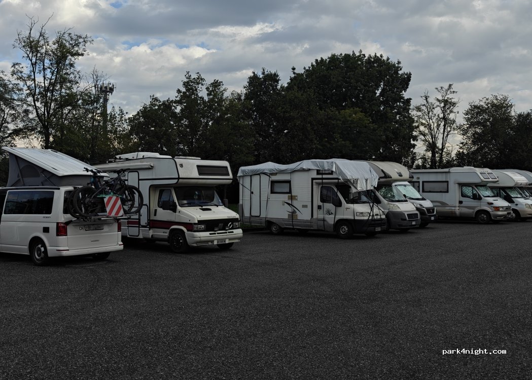 Buon parcheggio per una notte tranquilla. Alla mattina c’è rumore per le auto che passano e vanno al lavoro. Nel parcheggio ci sono molti camper rimessati.