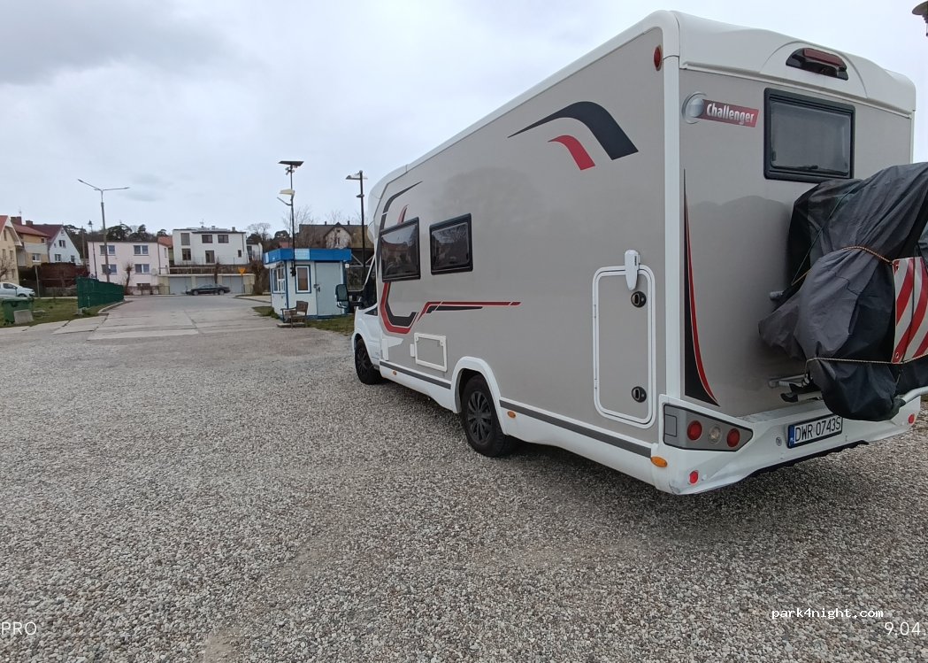 asfaltuota aikštelė prie autobusų stoties miestelio centre. Para - 50 zlotų. aikštelių kemperiams pasiūla čia maža