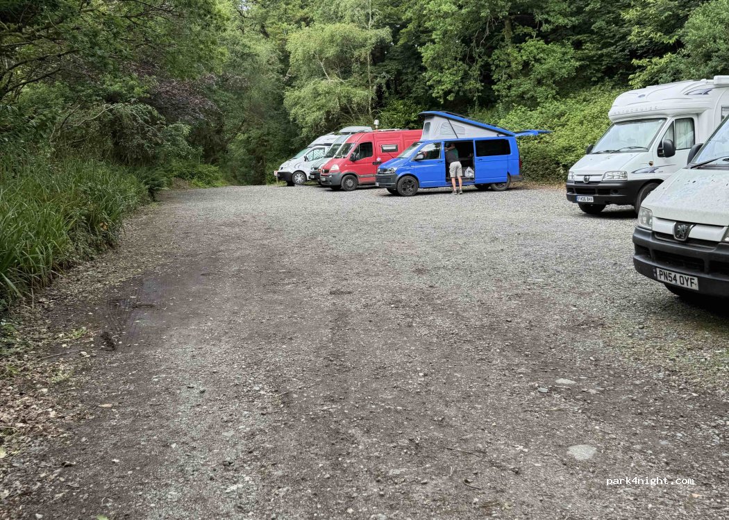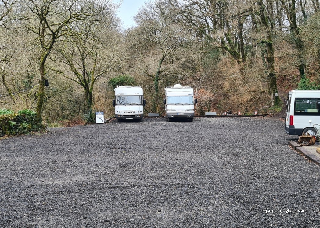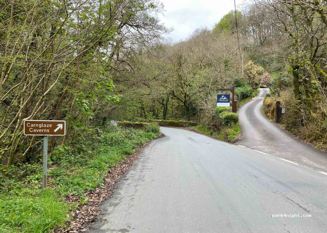 It's not free, but a great spot, safe, level off-road parking for campervans in the car park or coach park for Carnglaze Caverns. Booked our camper parking ticket via their website - BOOK ONLINE.