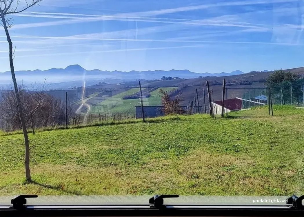 Area di sosta in un grande prato, lontano dal traffico ma comodamente accessibile per tutte le misure di camper. C’è una grandissima tettoia con tavoli e panche su un terreno asfaltato, molti barbecue e luce per la notte. C’è un bagno con doccia e lavandino, carico e scarico acque grigie e nere, un lavandino esterno, colonnina per elettricità e bidone per indifferenziata. Vista sulle colline, immerso nella tranquillità. L’agriturismo si trova di fianco e i proprietari sono stati gentilissimi, possibilità anche di comprare uova fresche, carne e di mangiare presso l’ agriturismo con prodotti locali. Tutto questo al modesto prezzo di 15€, al giorno d’oggi è difficile trovare questi servizi a questo prezzo in posti così naturalistici. Consigliatissimo per tutti i camperisti, per campeggio con tenda valutare bene il meteo: se piove possono formarsi pozzanghere essendo in un prato.