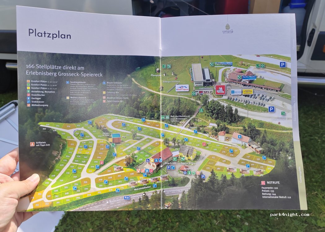 We camp here for two nights.( 40.10 € no strom/per day 2 adult camper). They give you LugauCard for free. Then you can one free roundtrip ride for Grosseckbahn then walk from Grosseckbahn to Sonnenbahn then ride down to visit St. Michael then again come back to Grosseckbahn Mauterndorf. Normaly this cost 40€ but with card its free. Also visiting Burg Maunterndorf (12€) is free again by this card.