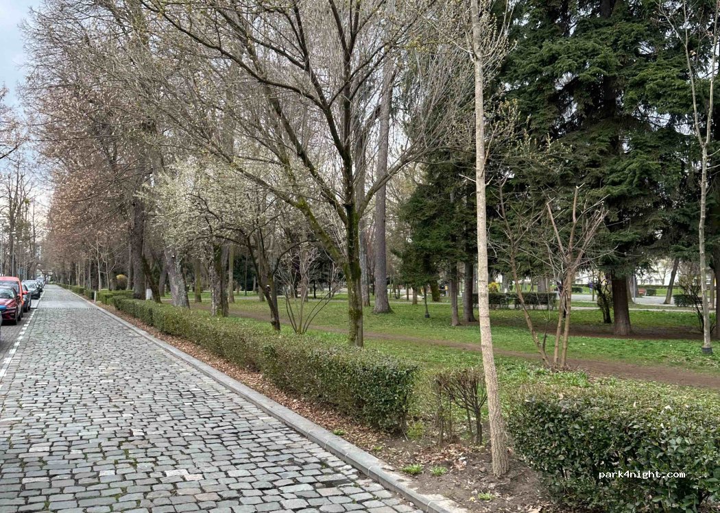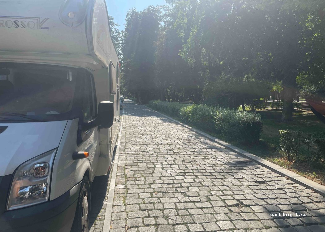 Paid street parking all the way along next to the park. Not great for long stays but close to the old town by walking through the park.