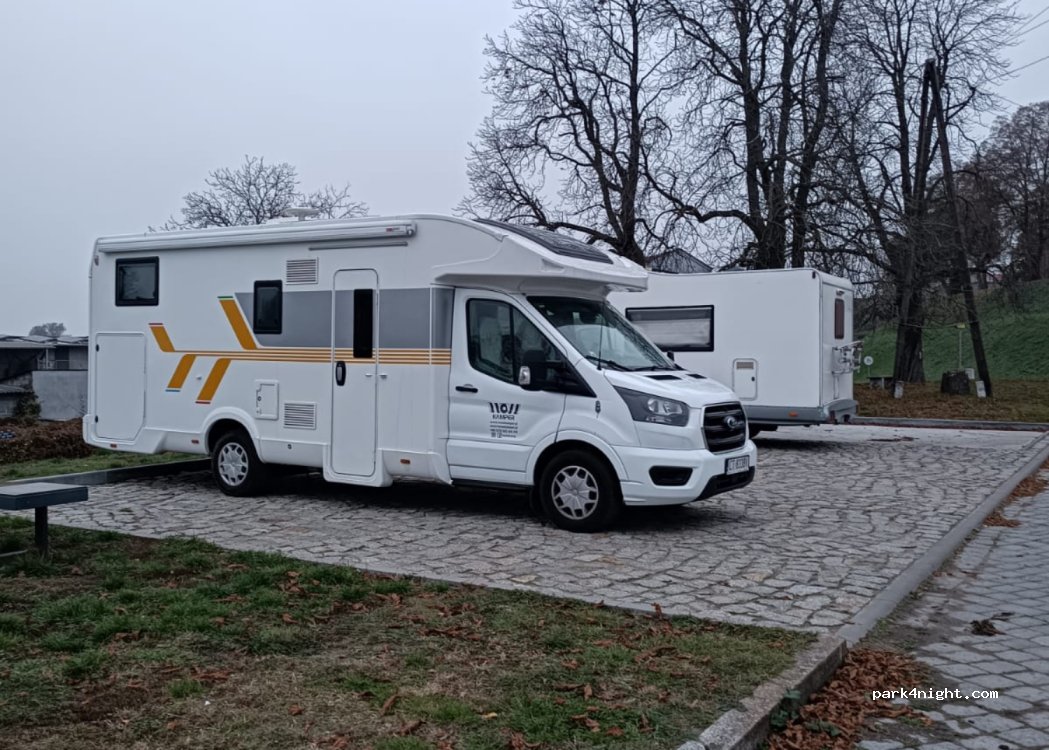 great parking with service point. late autumn empty, in summer it can be noisy from the nearby beach and bar. clean, safe and charming town of Pyzdry. we recommend the museum in the monastery.