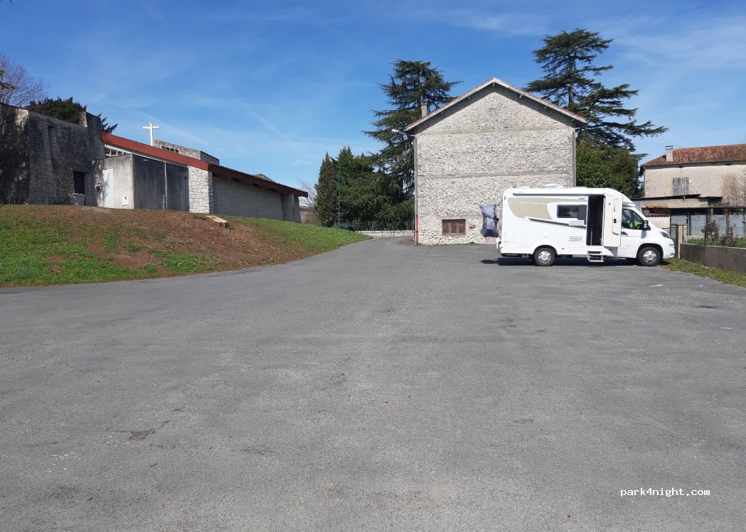 Do not hesitate to stop in this charming village. Parking behind the hall large enough to park during the day or at night (no ban). No services, just public toilets. You have to visit the medieval village (on the other side of the national road from the car park) and stop at Koki, a shop selling regional products (nuts, hazelnuts, prunes, etc.).