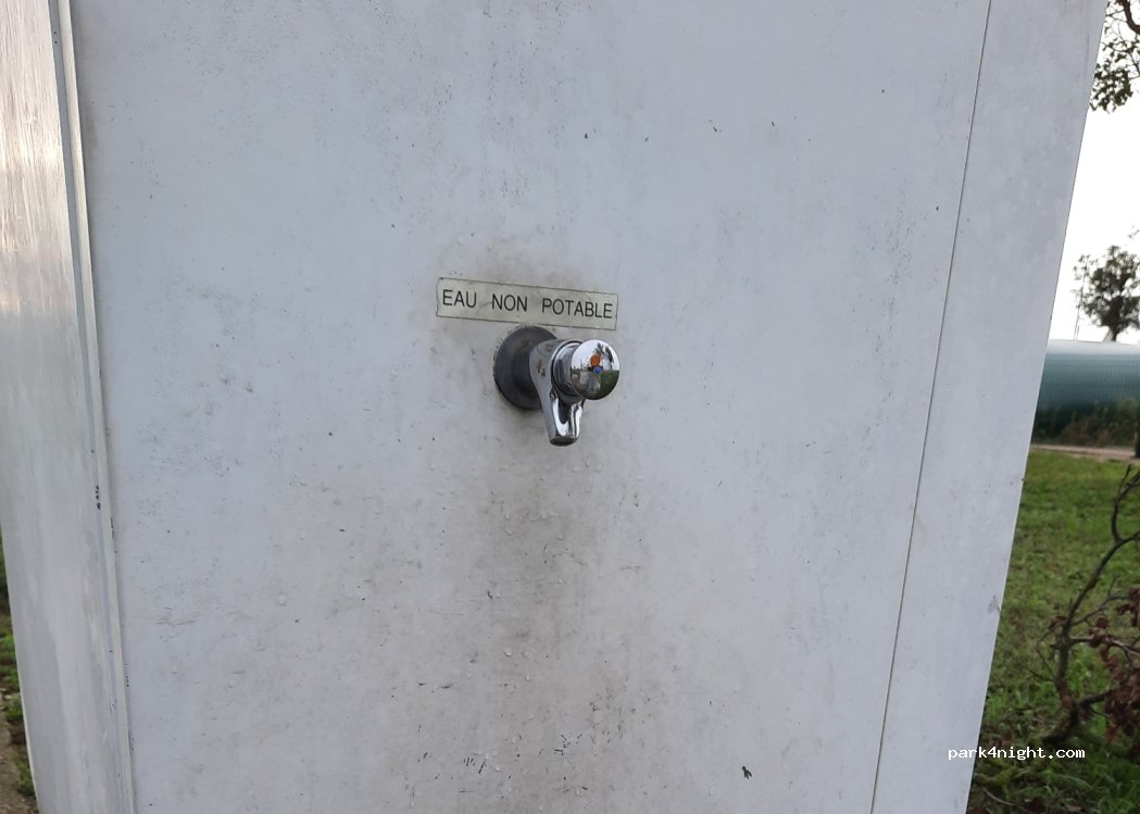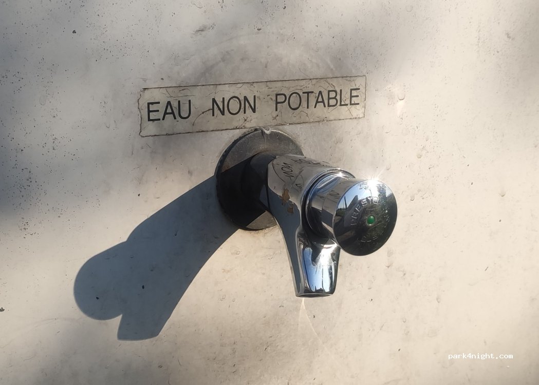 Suivre le parking camion complètement à droite pour arriver à la zone de vidage. Parfait pour vider eau noire et eau grise, par contre uniquement de l'eau non potable.